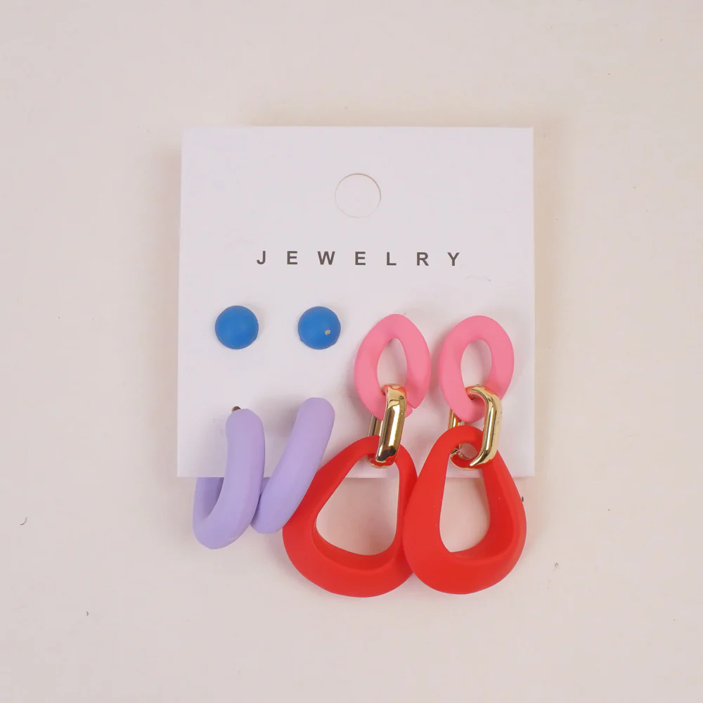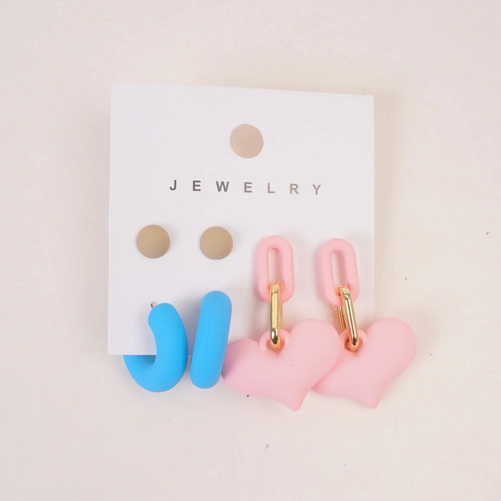 Woman's Flower Design Earring Heart Shape 6pcs Set Pink