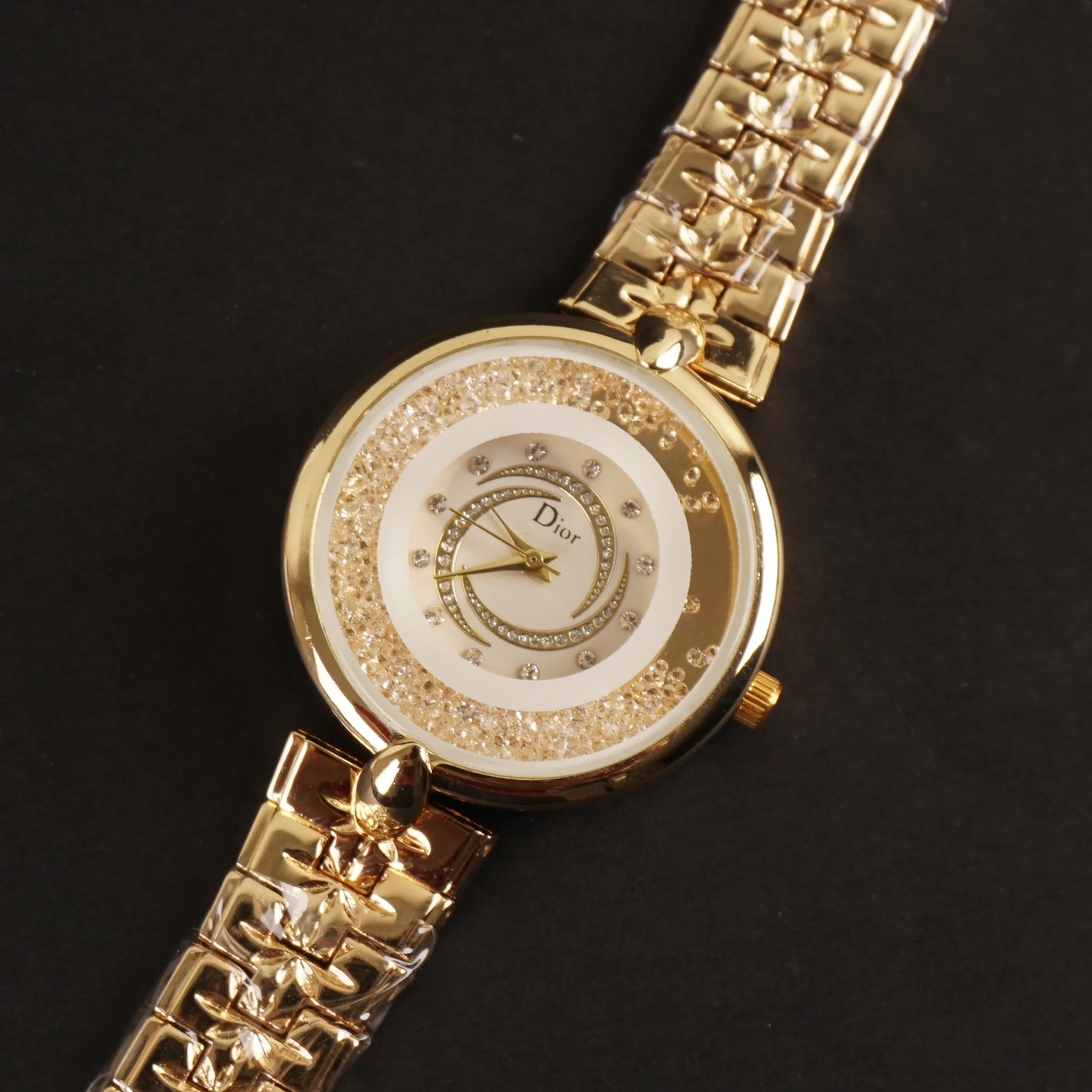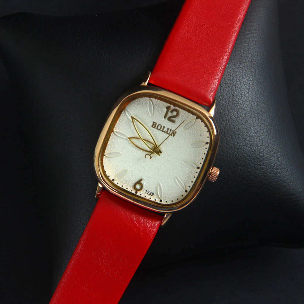 Red Leather Strap Rosegold Dial Women Wrist Watch