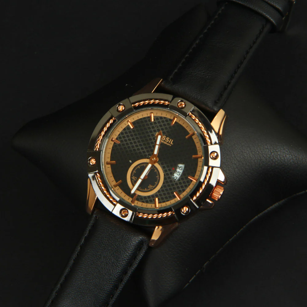 Black Strap Golden Dial 1249 Men's Wrist Watch
