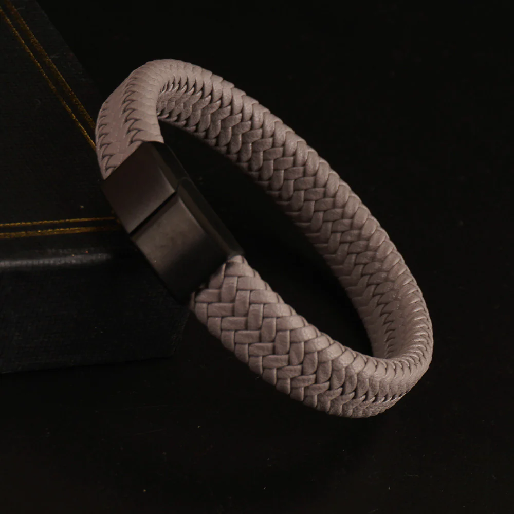 Gray Braided Leather Black Magnetic Lock Fashion Bracelet