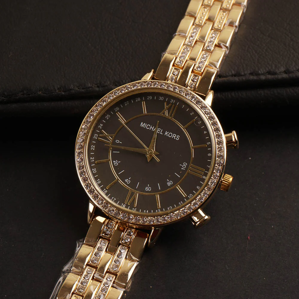 Women Chain Wrist Watch Golden Black MK