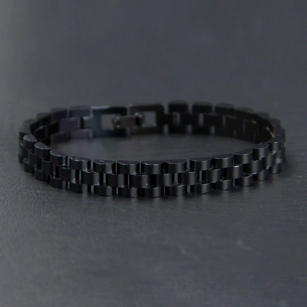 Stainless Steel Men's Tiger Eye Black Stone Link Chain Bracelet
