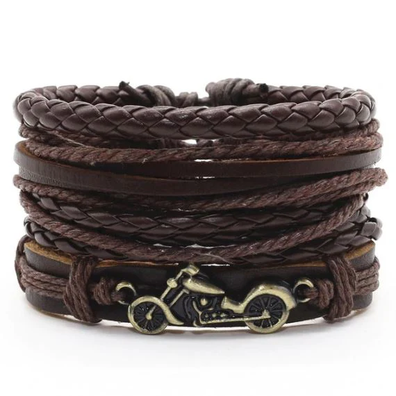 Brown Motorcycle Gecko Alloy Leather Bracelet