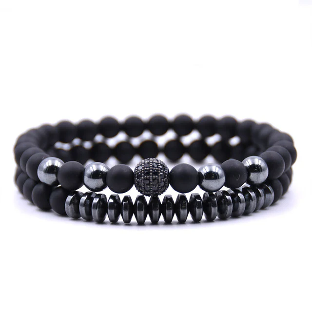 Black Matte 6mm Men Stone Beads Bracelet 2Pc Set