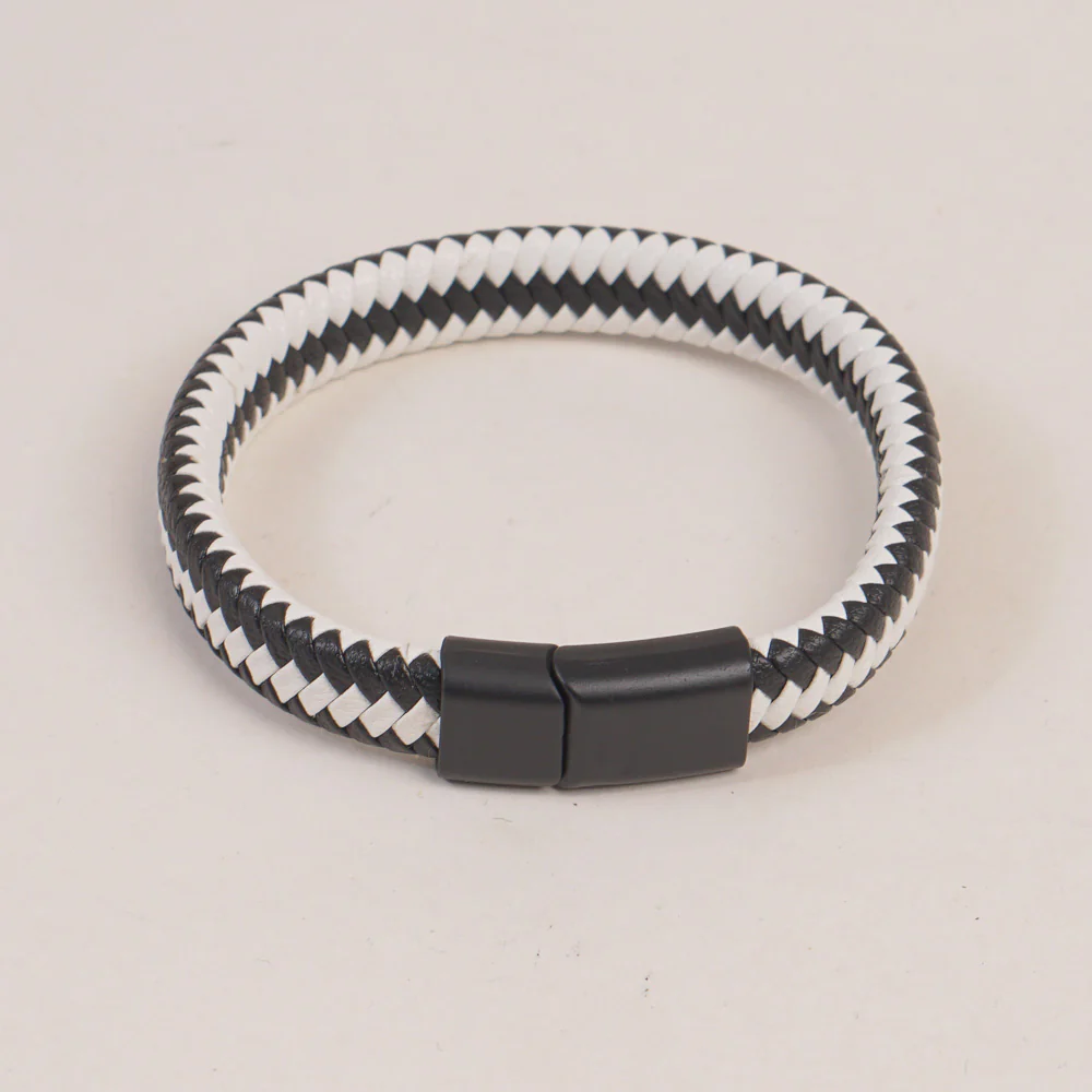 White- Blk P.U Leather Mans Bracelet
