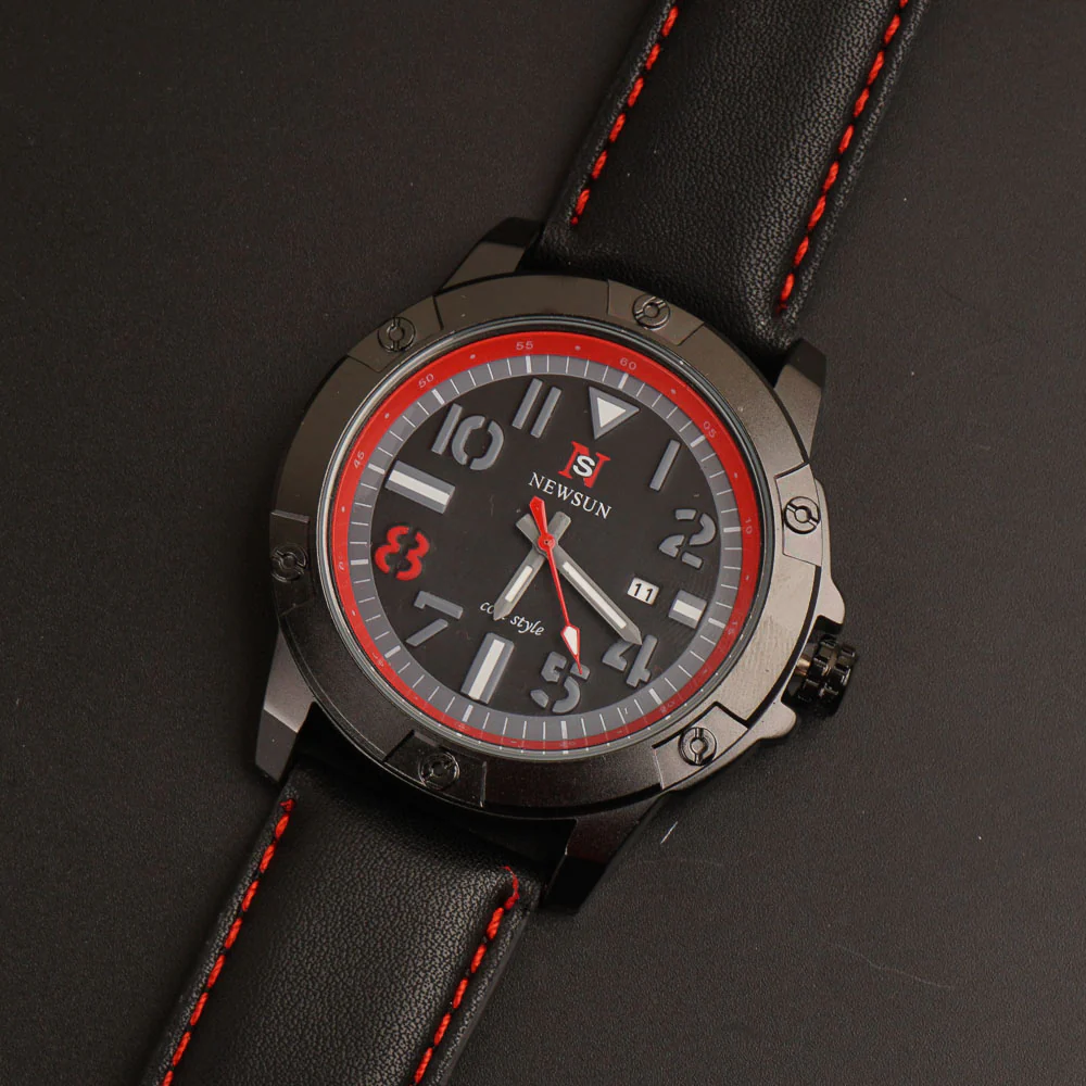 Mens Fancy Watch With Date & Time Black-Red Strap