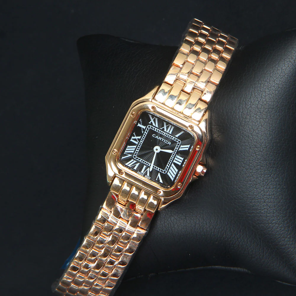 Women Chain Wrist Watch Square Shape Rosegold Black