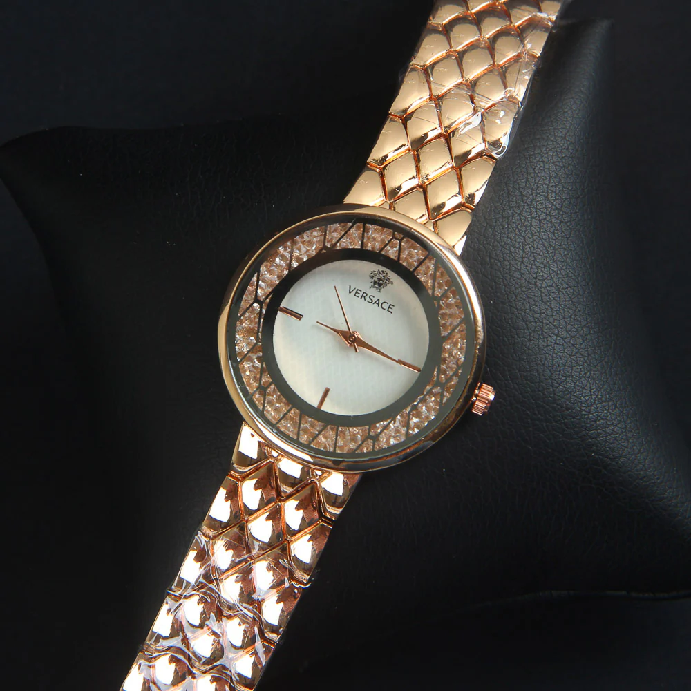 Women Chain Wrist Watch Rosegold White V