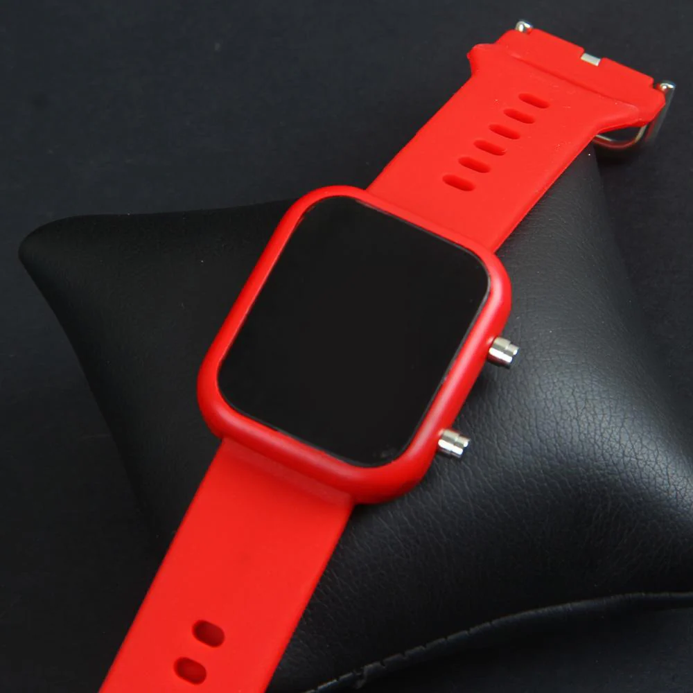 Red Digital LED Wrist Watch Metal Case For Men & Women