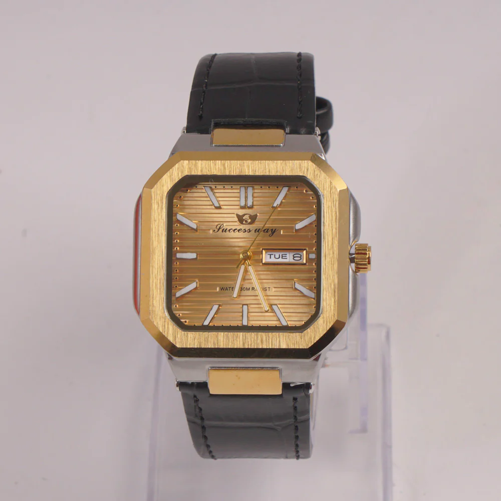 Man's Wrist Watch Golden Dial with Black Straps