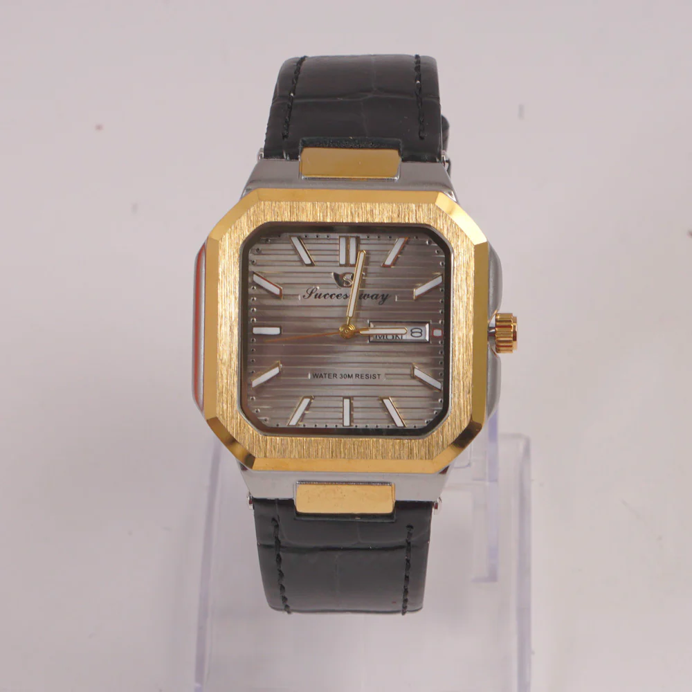Mens Golden Chain Square Wrist Watch Black Dial