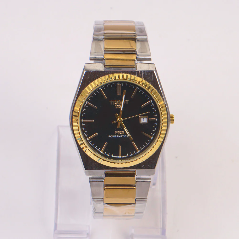 Two Tone Mans Chain Wrist Watch Black Dial