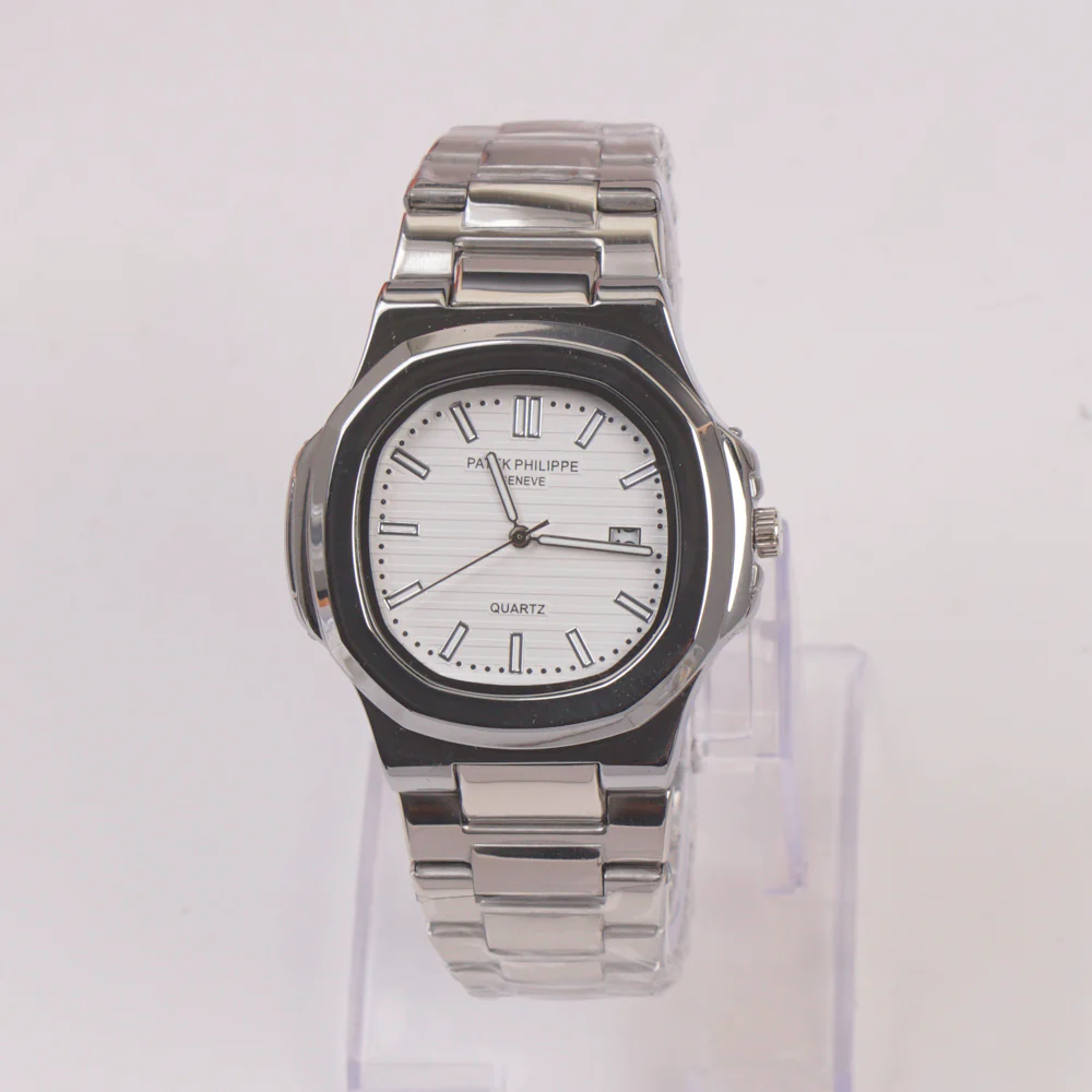 Two Tone Mans Chain Wrist Watch Silver Dial
