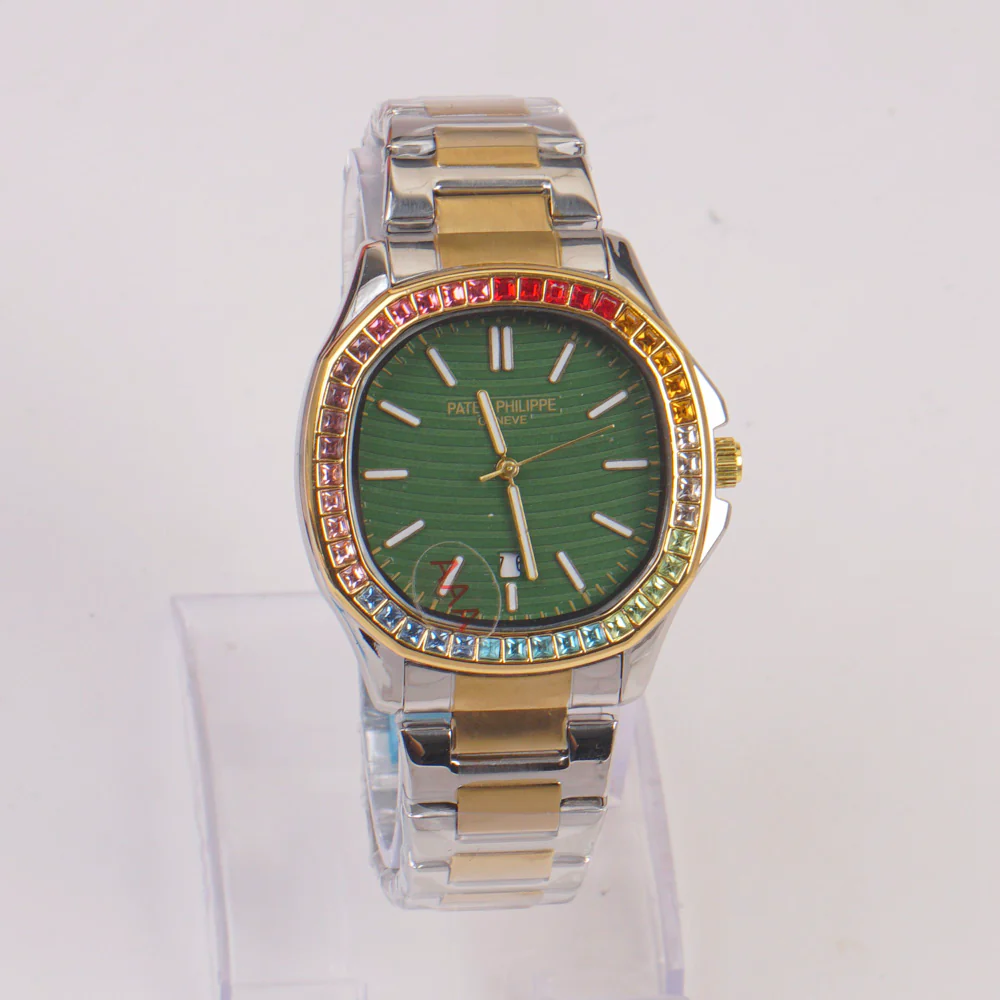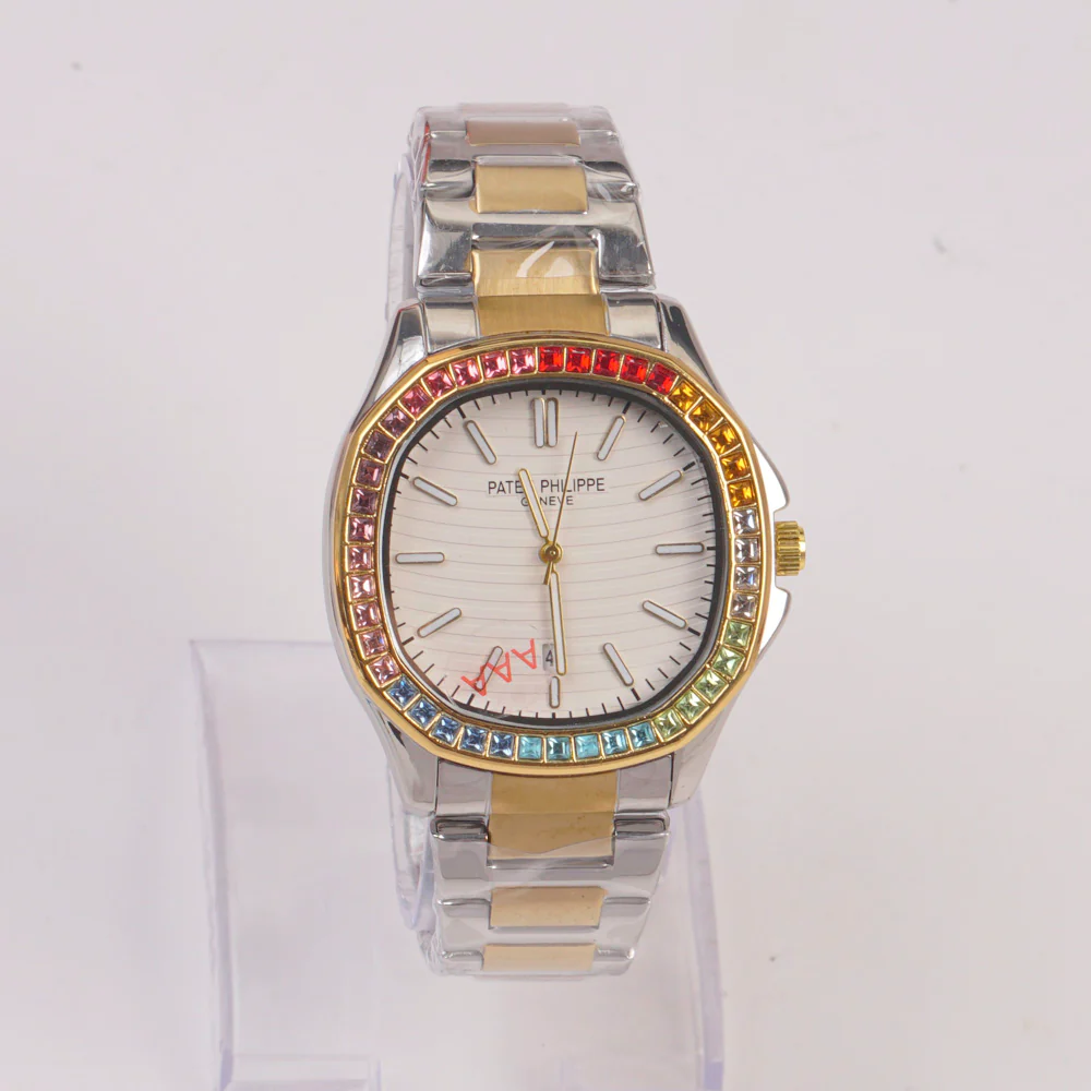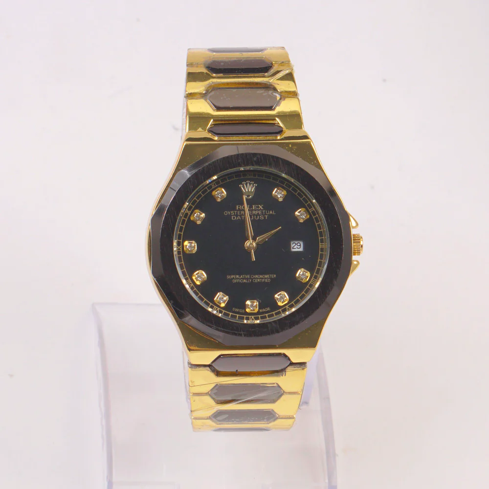 Two Tone Mans Chain Wrist Watch Golden Dial