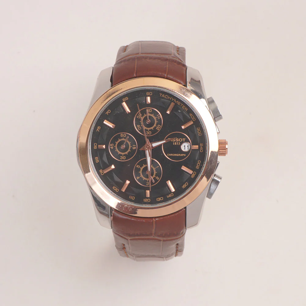Men's Chronograph Wrist Watch Black Dial Brown Straps