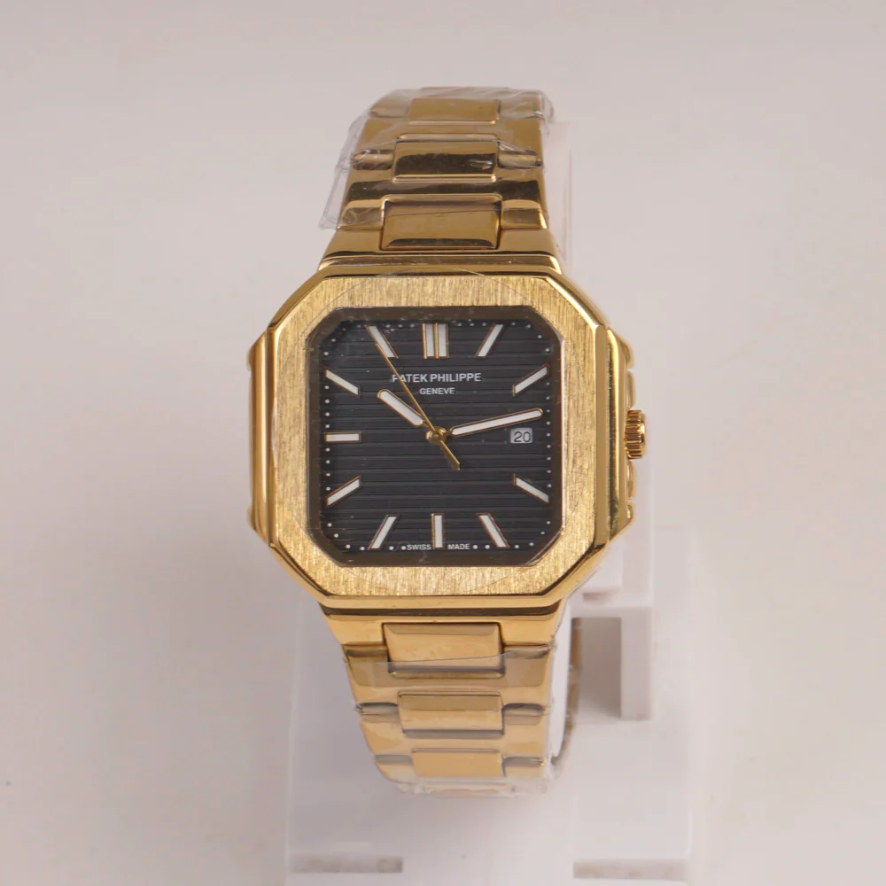 Two Tone Mens Chain Square Wrist Watch White Dial