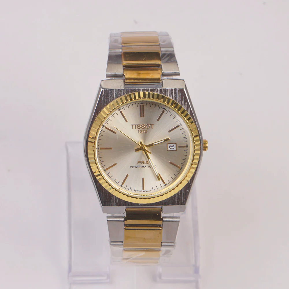Two Tone Mans Chain Wrist Watch Silver Dial