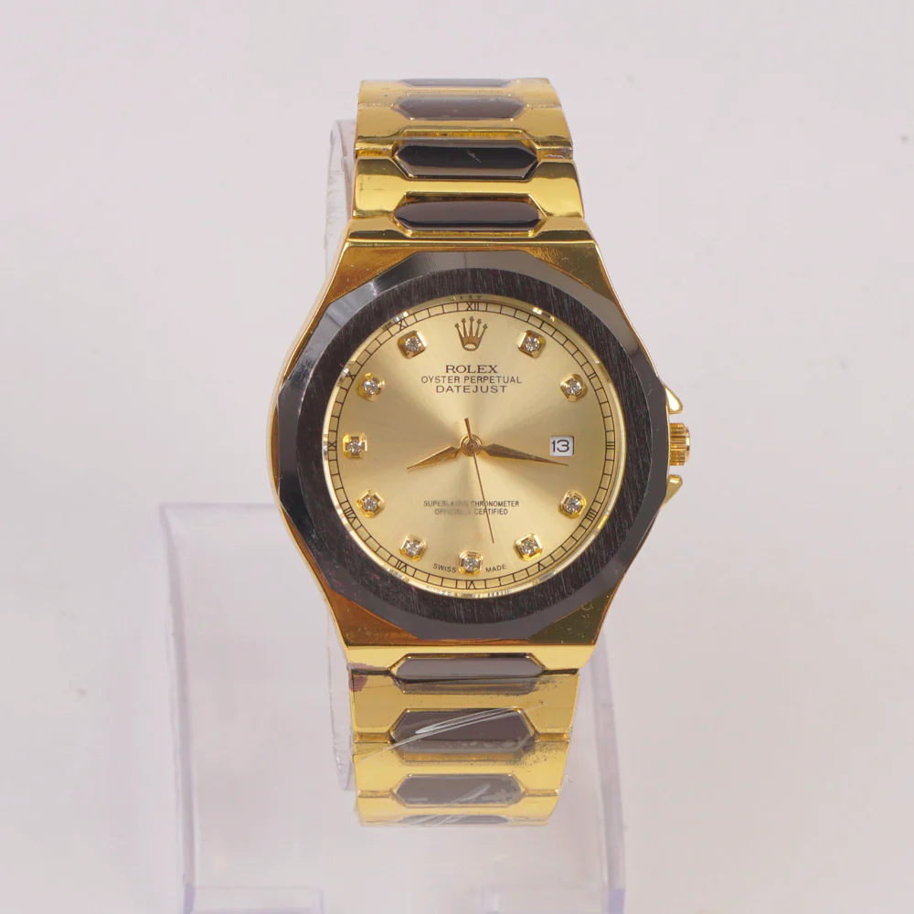 Two Tone Mans Chain Wrist Watch Golden Dial
