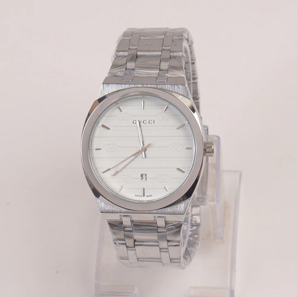 Mens Chain Silver Wrist Watch White Dial