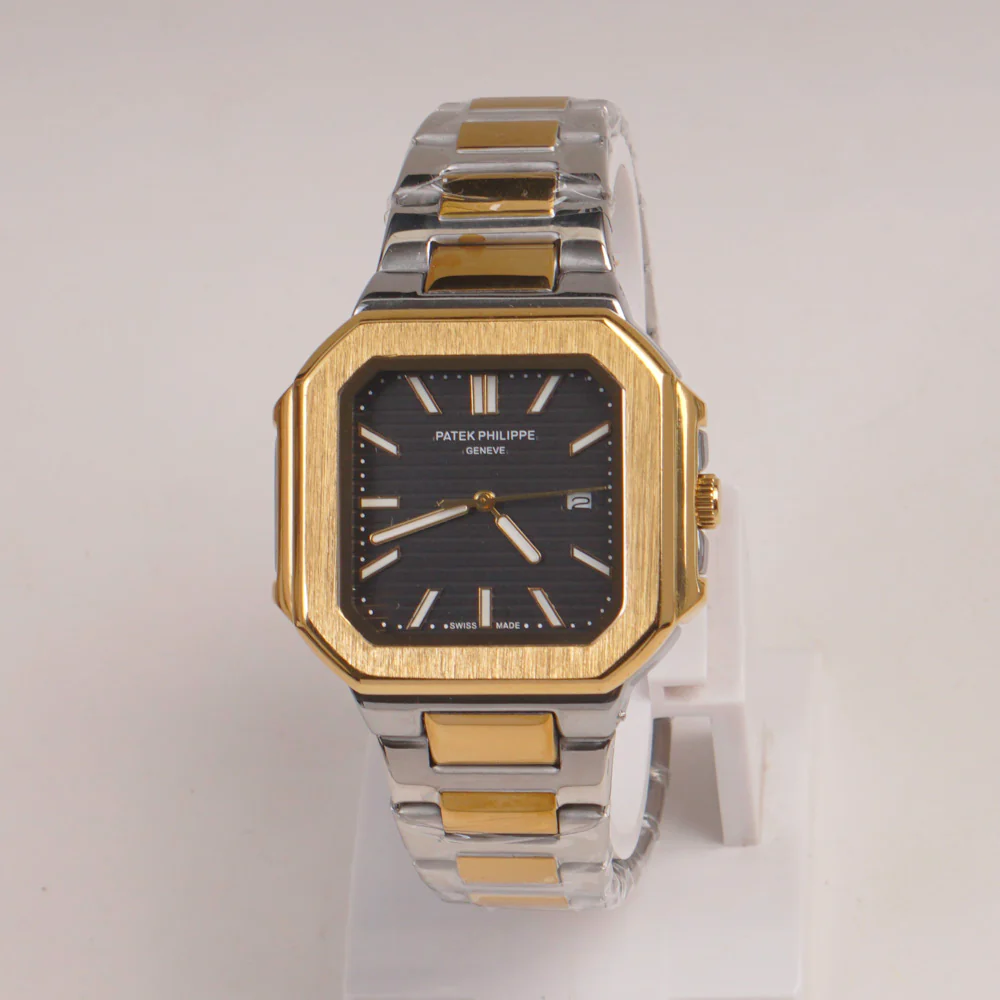 Two Tone Mans Chain Wrist Watch Black Dial