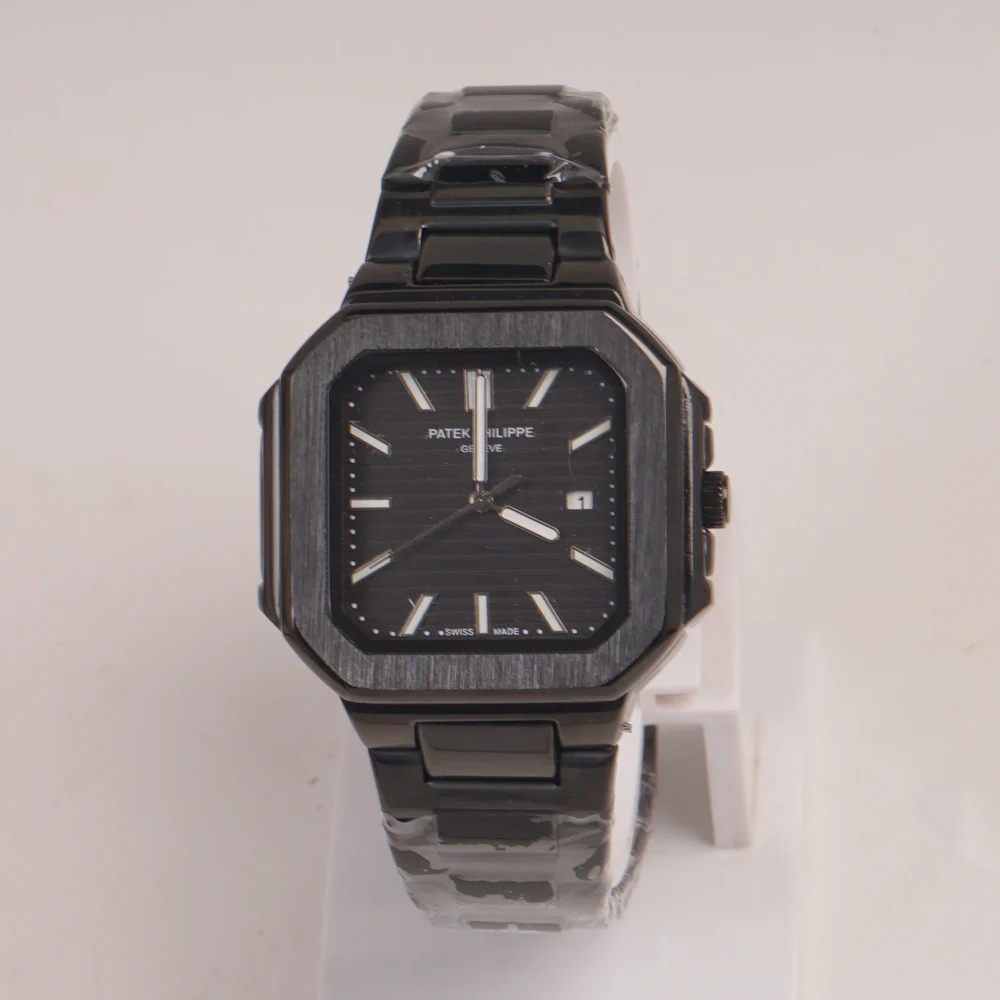 Mens Black Chain Square Wrist Watch Black Dial