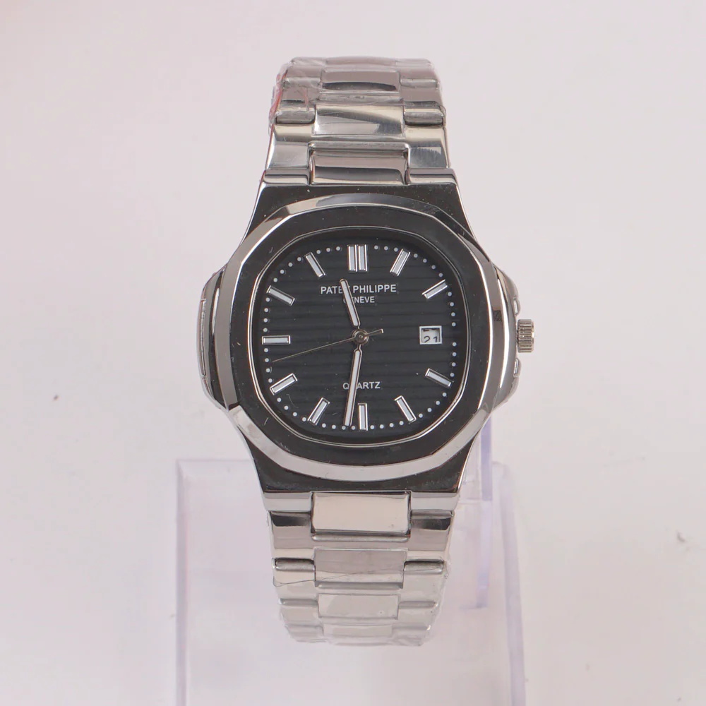 Mans Silver Chain Wrist Watch Black Dial