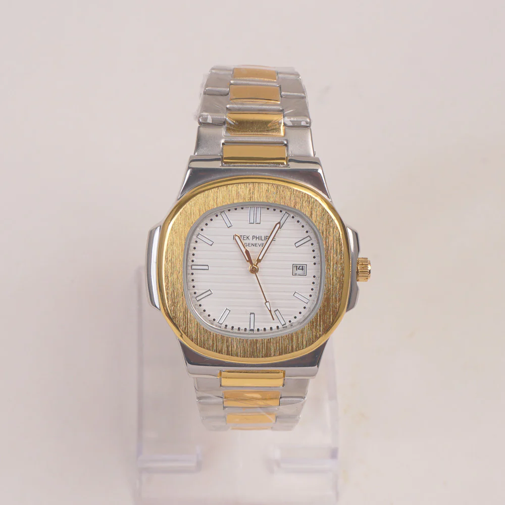 Two Tone Mans Chain Wrist Watch Phi.lip Path.k White Dial