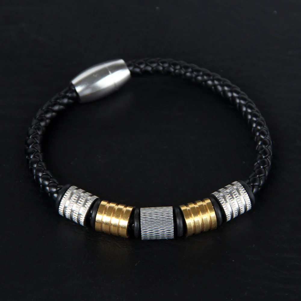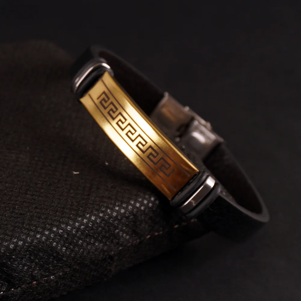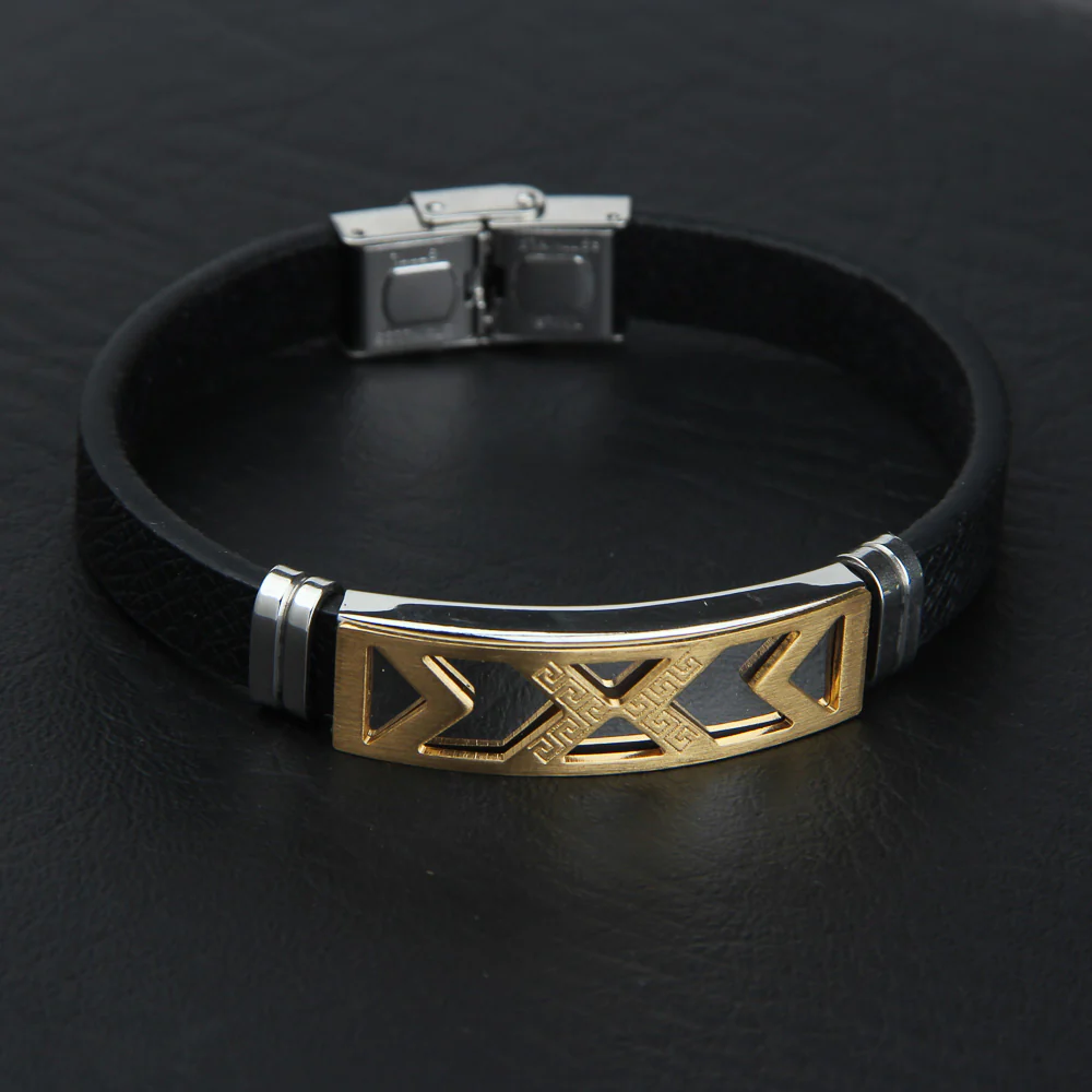 Black Leather Bracelet Golden