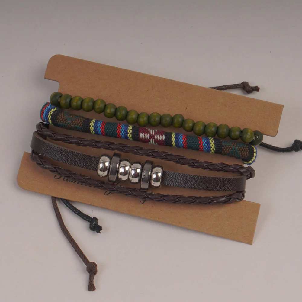 3pc Set Fashion Trendy Mans Bike Bracelet Brown Leave Design