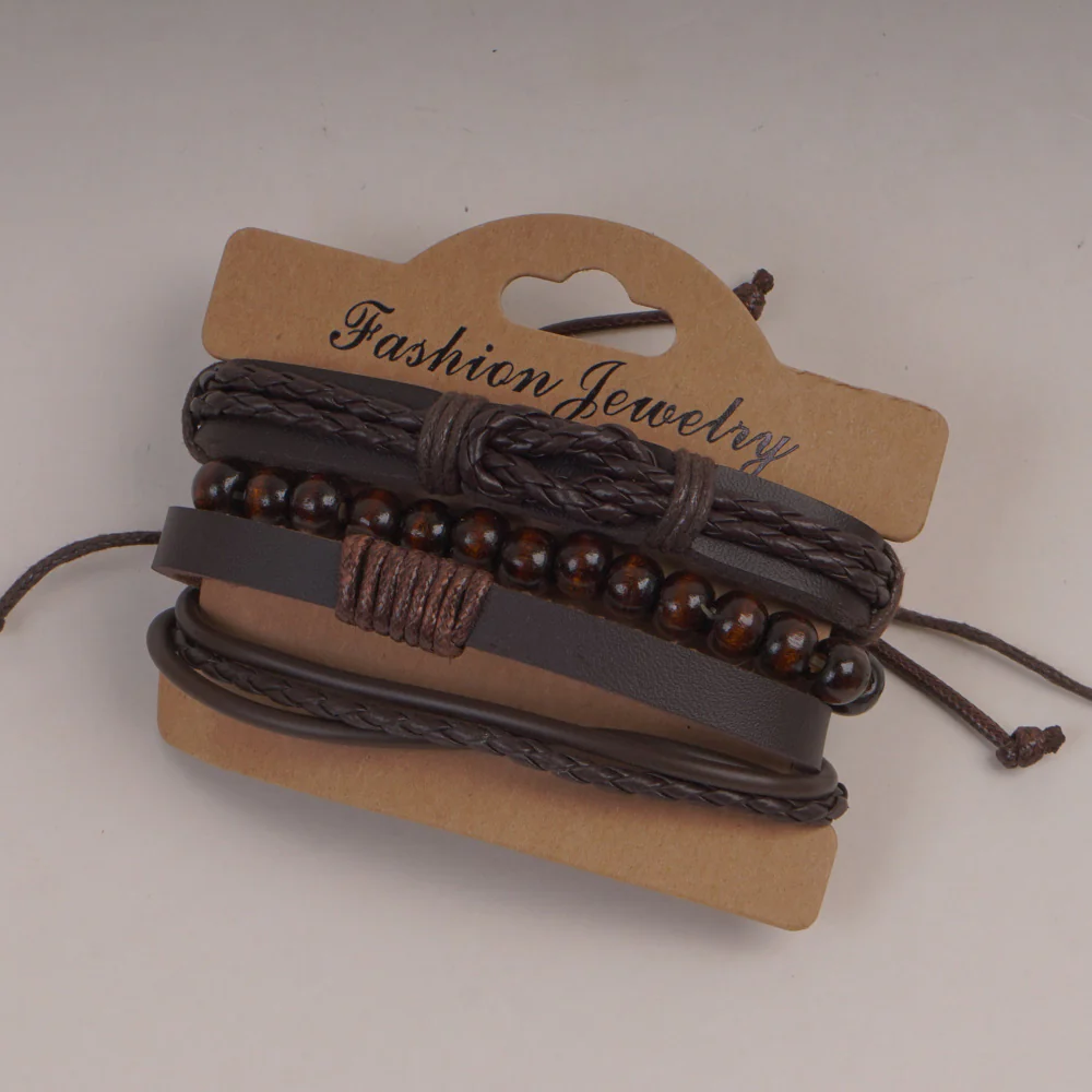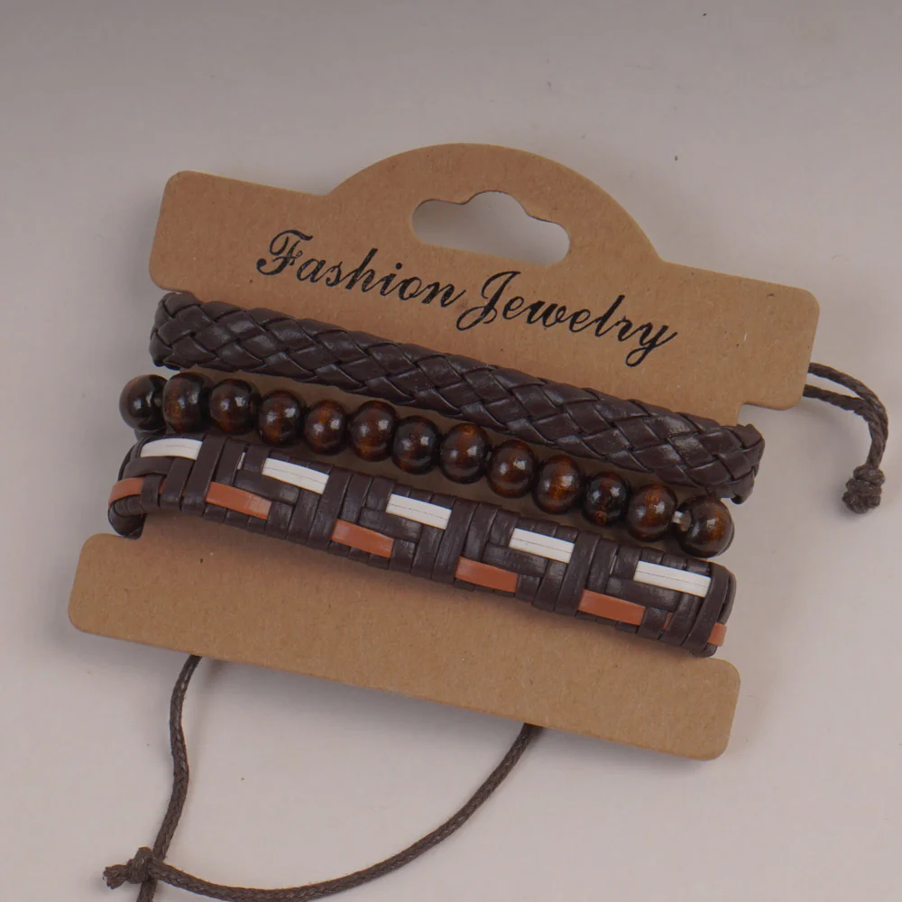 3pc Set Fashion Trendy Mans Bike Bracelet Brown