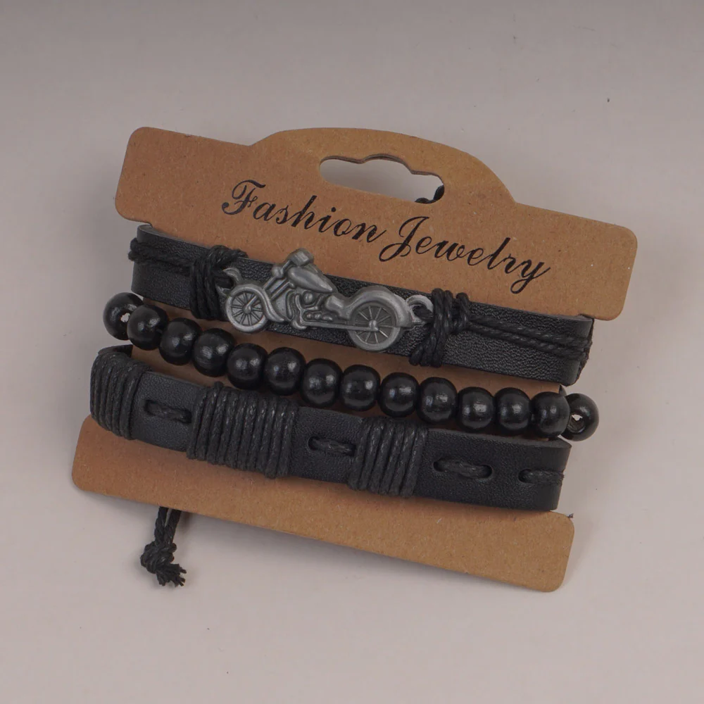 3pc Set Fashion Trendy Mans Bike Bracelet Black Bike
