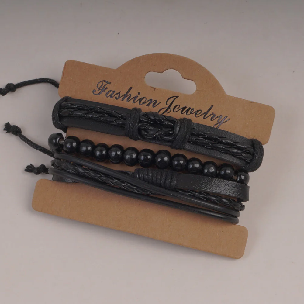 3pc Set Fashion Trendy Mans Bike Bracelet Black Leave