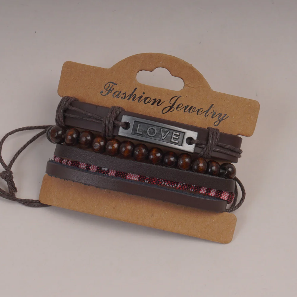 3pc Set Fashion Trendy Mans Bike Bracelet Brown Love Design
