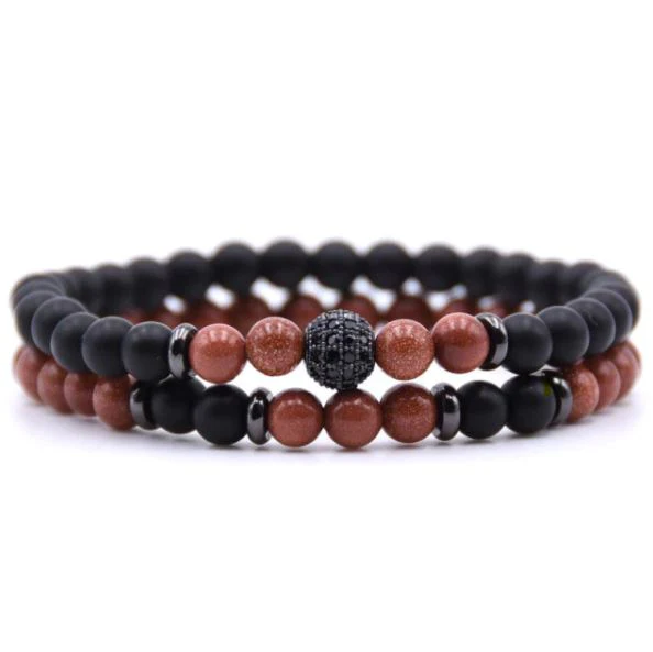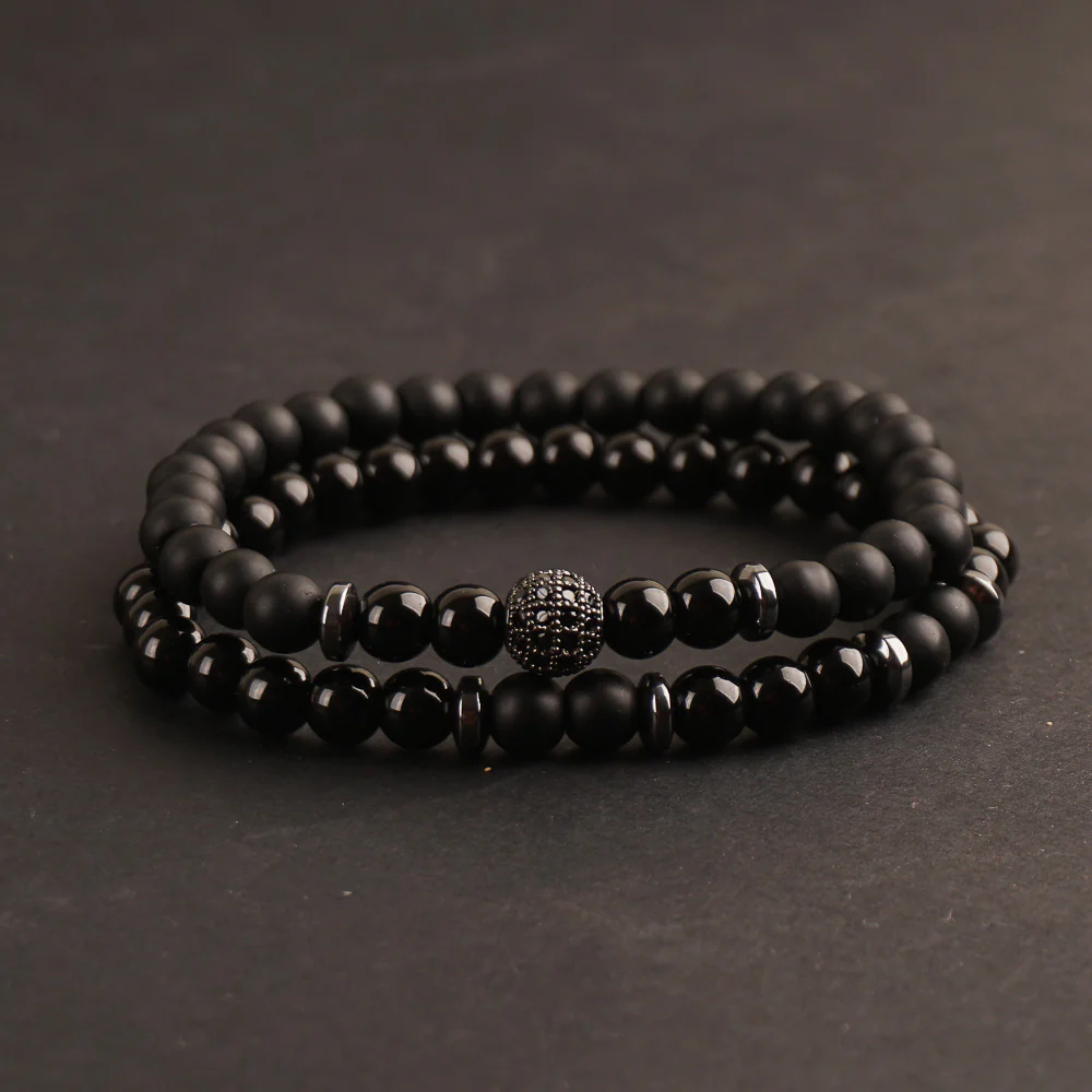 2pc Sets Black Beads Stone Bracelets