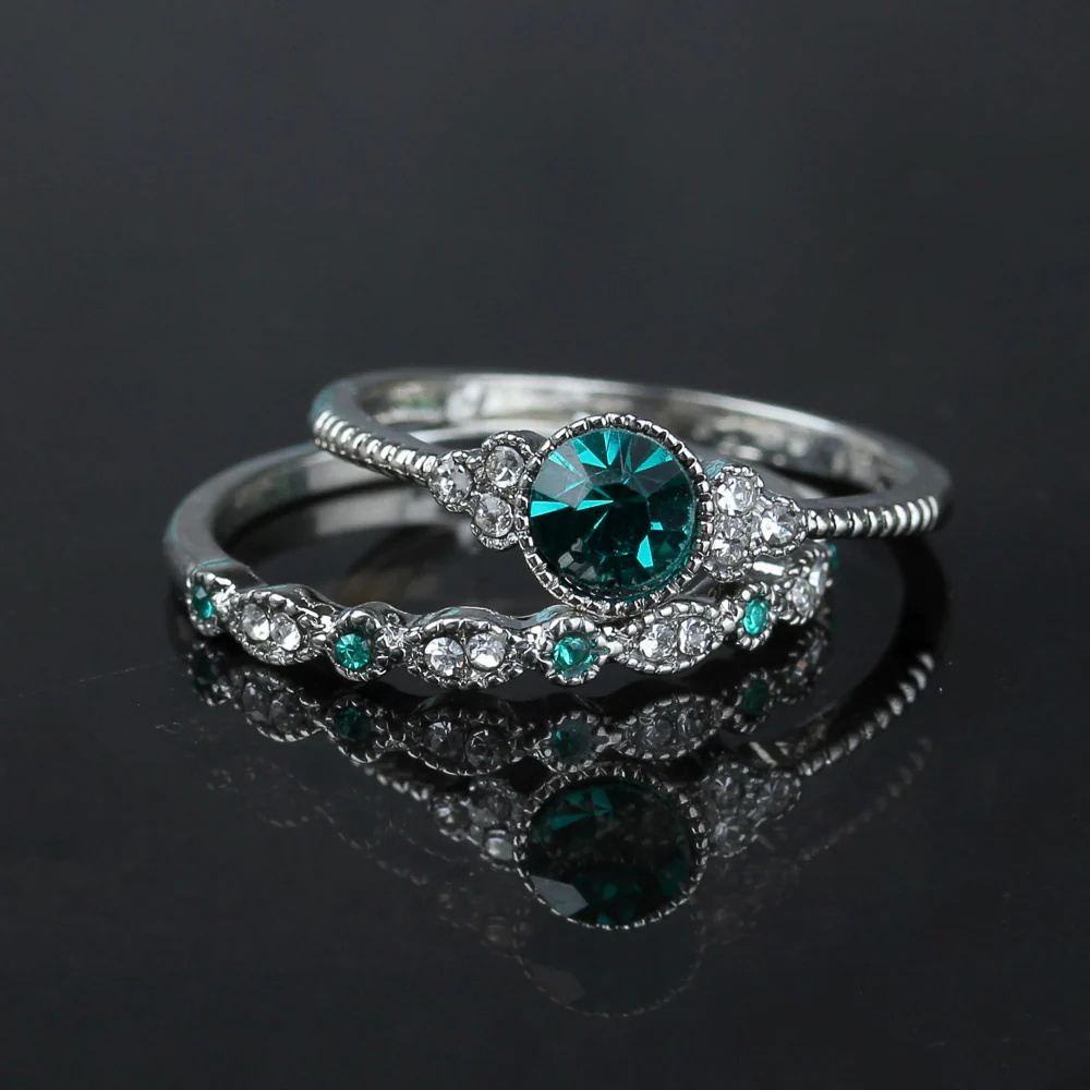 2Pcs Set rings Green Luxury Crystal Rings