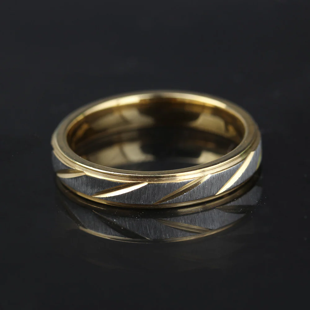 Lover Wave Couple Gold 4mm Stainless Steel Rings